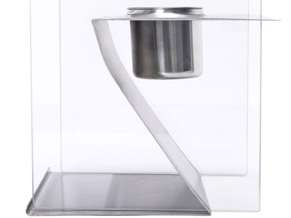 La biochimenea HERA es un modelo econ贸mico, fabricado en acero inoxidable y cristal de vidrio templado, su moderno dise帽o incluye un dep贸sito de 0,15L cuyas llamas consiguen un bonito efecto con multiplicidad de perspectivas.