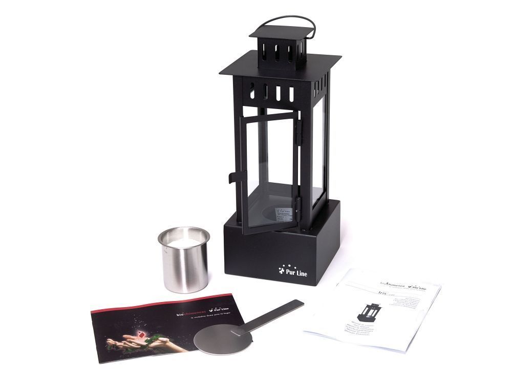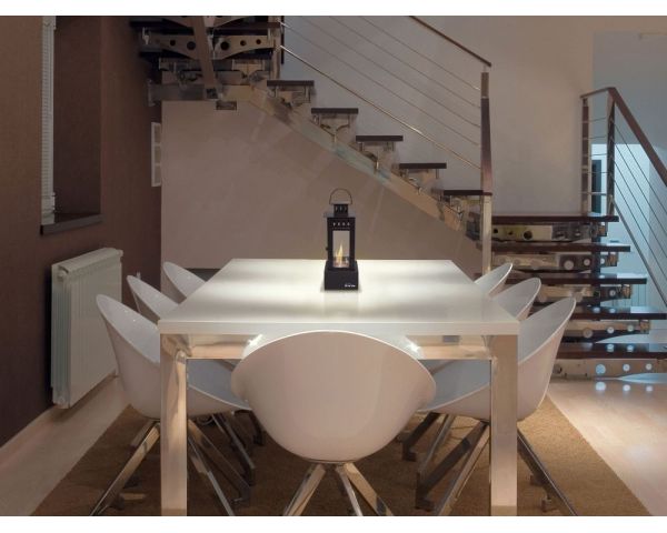 La biochimenea IRIS B está fabricada en metal, tiene un depósito de 0,5L y su diseño en forma de farolillo negro es moderno y práctico. Sus cuatro vidrios templados contienen unas llamas que aportarán un toque diferente y creativo a tu hogar.