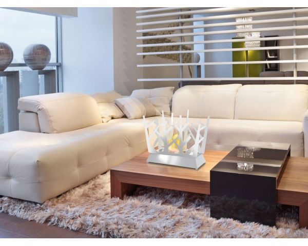 La biochimena DAFNE W es un exclusivo modelo en blanco, fabricado en acero esmaltado, con dise帽o vegetal, dep贸sito de 1.2 L y llama regulable que aportar谩 un toque ex贸tico a tu hogar.
