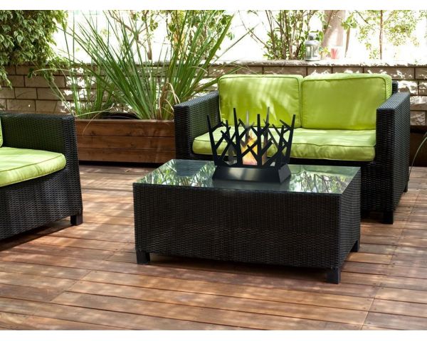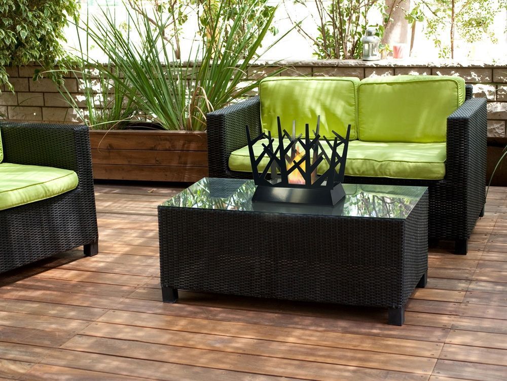 Su tama帽o (LxPxH: 45 x 20 x 43 cm), su ligereza (6kg) y su dise帽o moderno la hacen perfecta para usar en terrazas y jardines, en suelo o sobre muebles, ayudando a crear un ambiente acogedor, c谩lido y genuino.