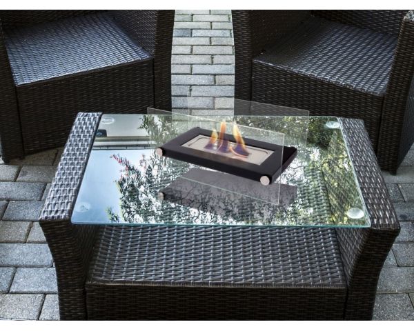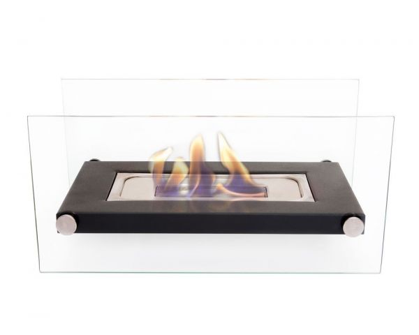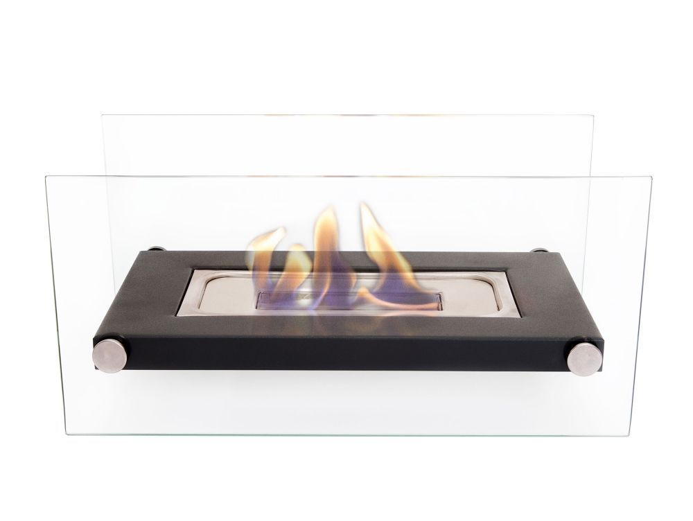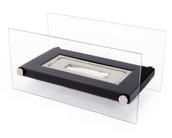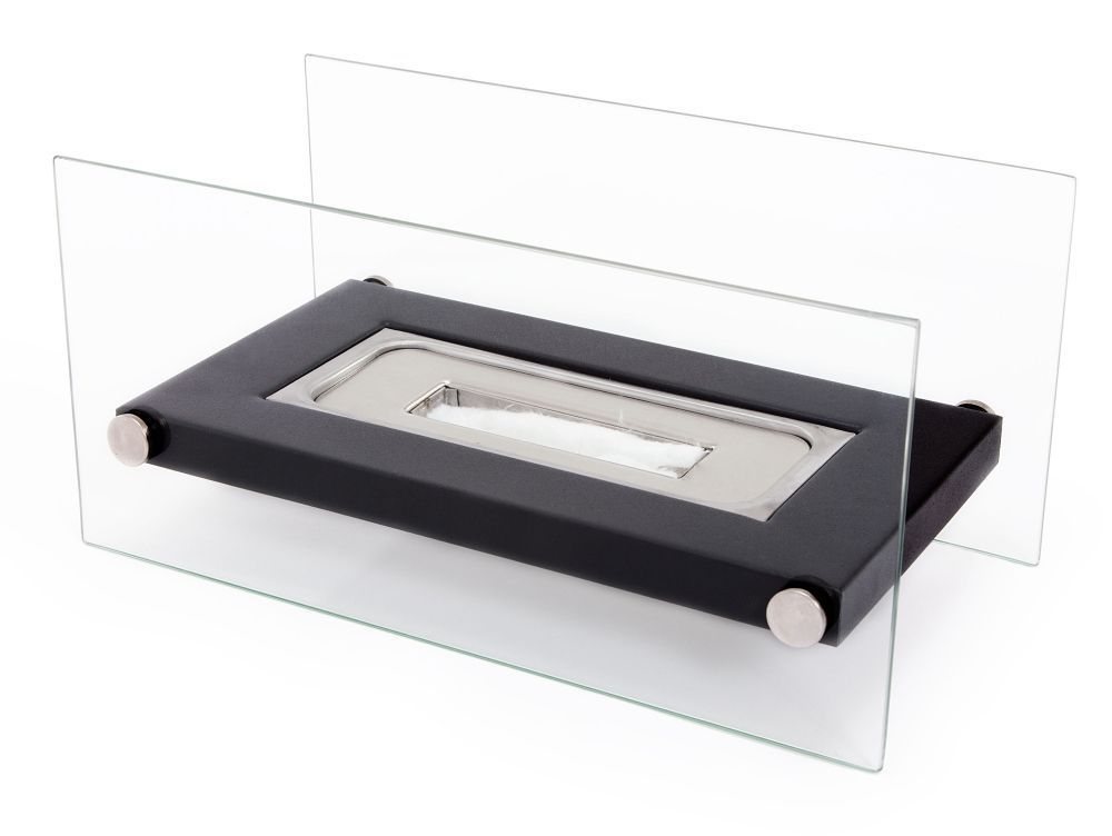 La ONIROS es una elegante biochimenea fabricada en metal con un dise帽o sencillo y minimalista en color negro, compuesto por un dep贸sito de 0,25L y dos cristales de vidrio templado que enmarcan una peque帽a llama regulable.