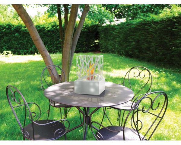 Su tamaño (LxPxH: 22 x 22 x 29 cm), su ligereza (2.3kg) y su diseño moderno la hacen perfecta para usar en terrazas y jardines, en suelo o sobre muebles, ayudando a crear un ambiente acogedor, cálido y genuino.