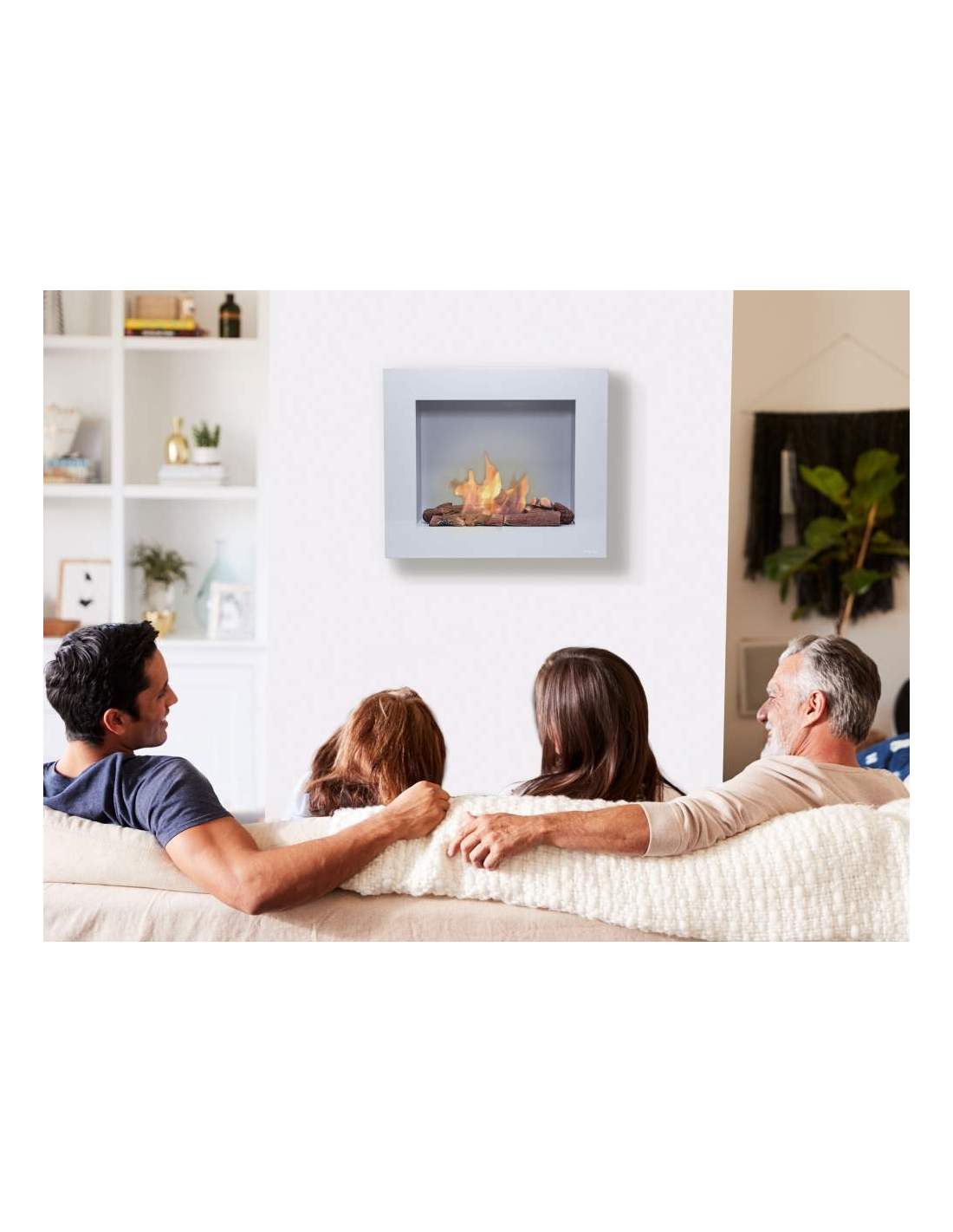 Incluye kit de colgado, y su tamaño (LxPxH: 70 x 20 x 60 cm), su ligereza (18.5kg) y su diseño moderno la hacen perfecta para poner en la pared o encastrarla, sin necesidad de obras ni salida de humos, ayudando a crear un ambiente acogedor, cálido y genuino.
