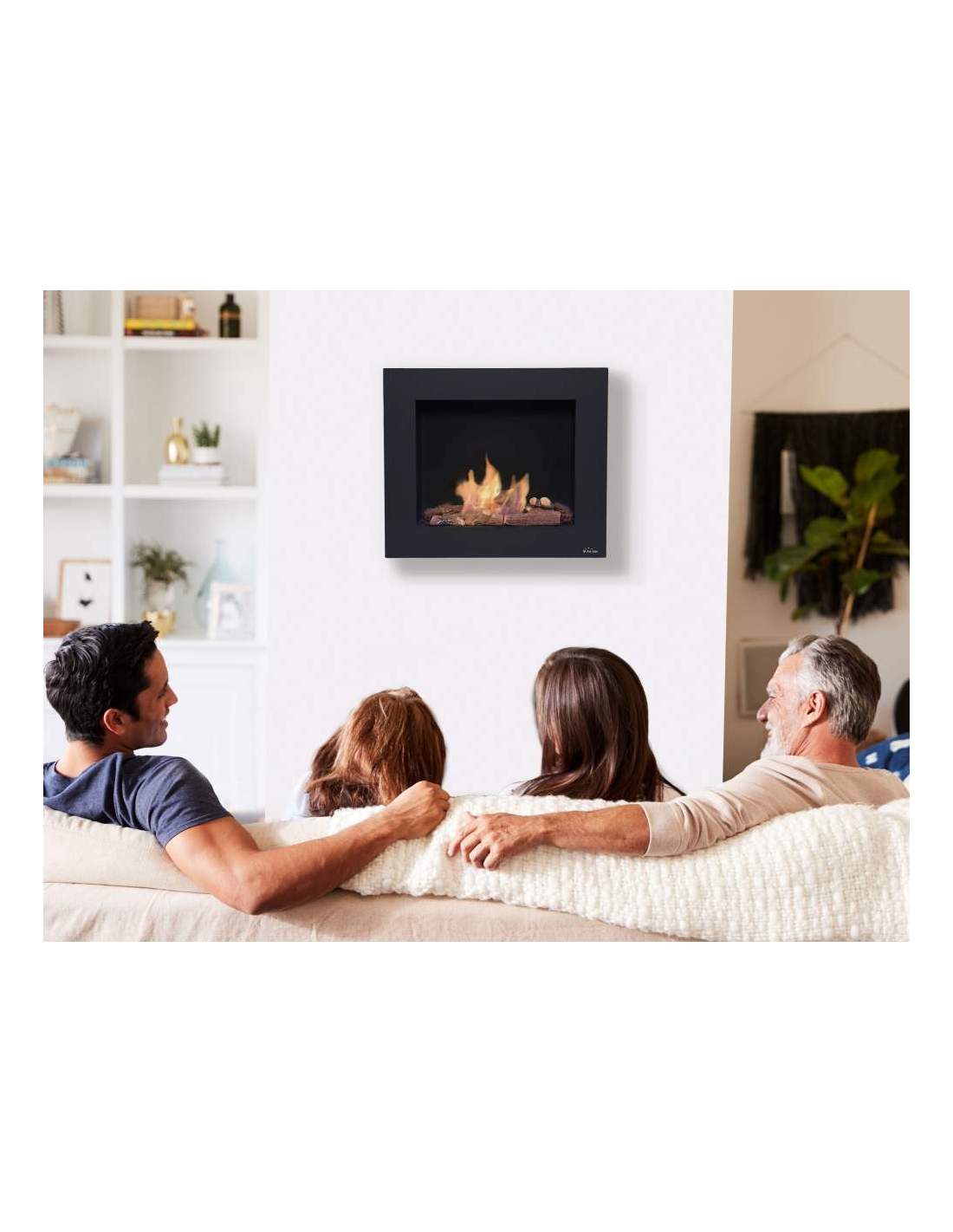 Incluye kit de colgado, y su tamaño (LxPxH: 70 x 20 x 60 cm), su ligereza (18.5kg) y su diseño moderno la hacen perfecta para poner en la pared o encastrarla, sin necesidad de obras ni salida de humos, ayudando a crear un ambiente acogedor, cálido y genuino.