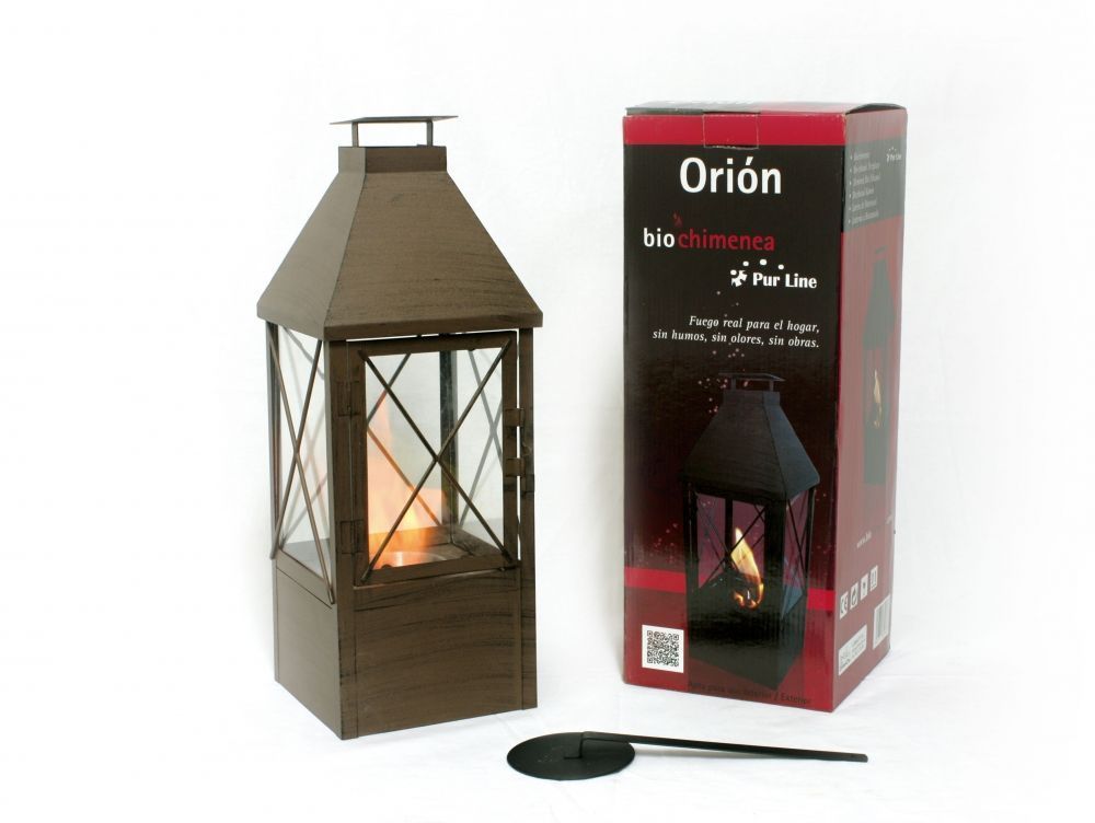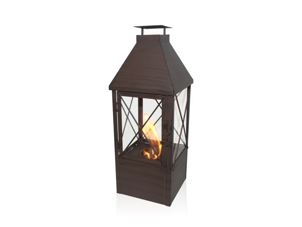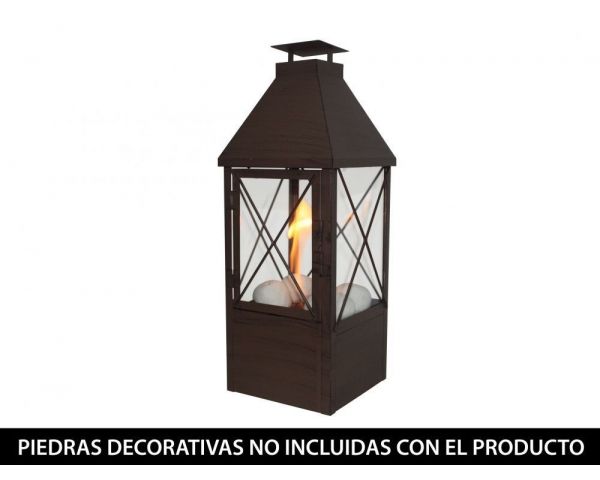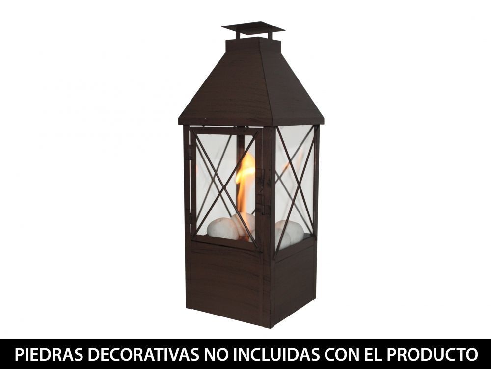 El farolillo ORION es un modelo en color marrón, con un depósito de 0.3L y un diseño clásico fabricado en metal y con cuatro cristales de vidrio templado que aportarán un toque rústico a tu hogar.