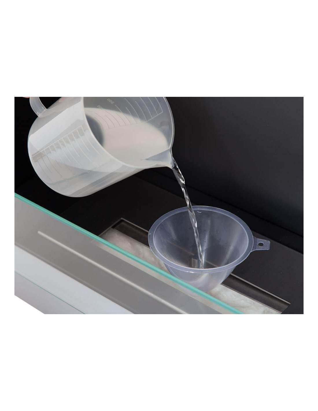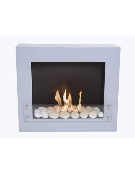 La BESTBIO DESIGN G está fabricada en acero lacado gris, con un protector de cristal de vidrio templado y está diseñada en forma de rectángulo al estilo clásico de las chimeneas de leña. Toda la serie BESTBIO DESIGN incluye una jarra y un embudo para facilitar el llenado del depósito, y un kit de piedras cerámicas decorativas que aportarán exclusividad a este minimalista modelo. Su bloque de combustión tiene una capacidad de 1.2L y ofrece la posibilidad de regular la intensidad de la llama, además su potencia calorífica es equivalente a 2KW.