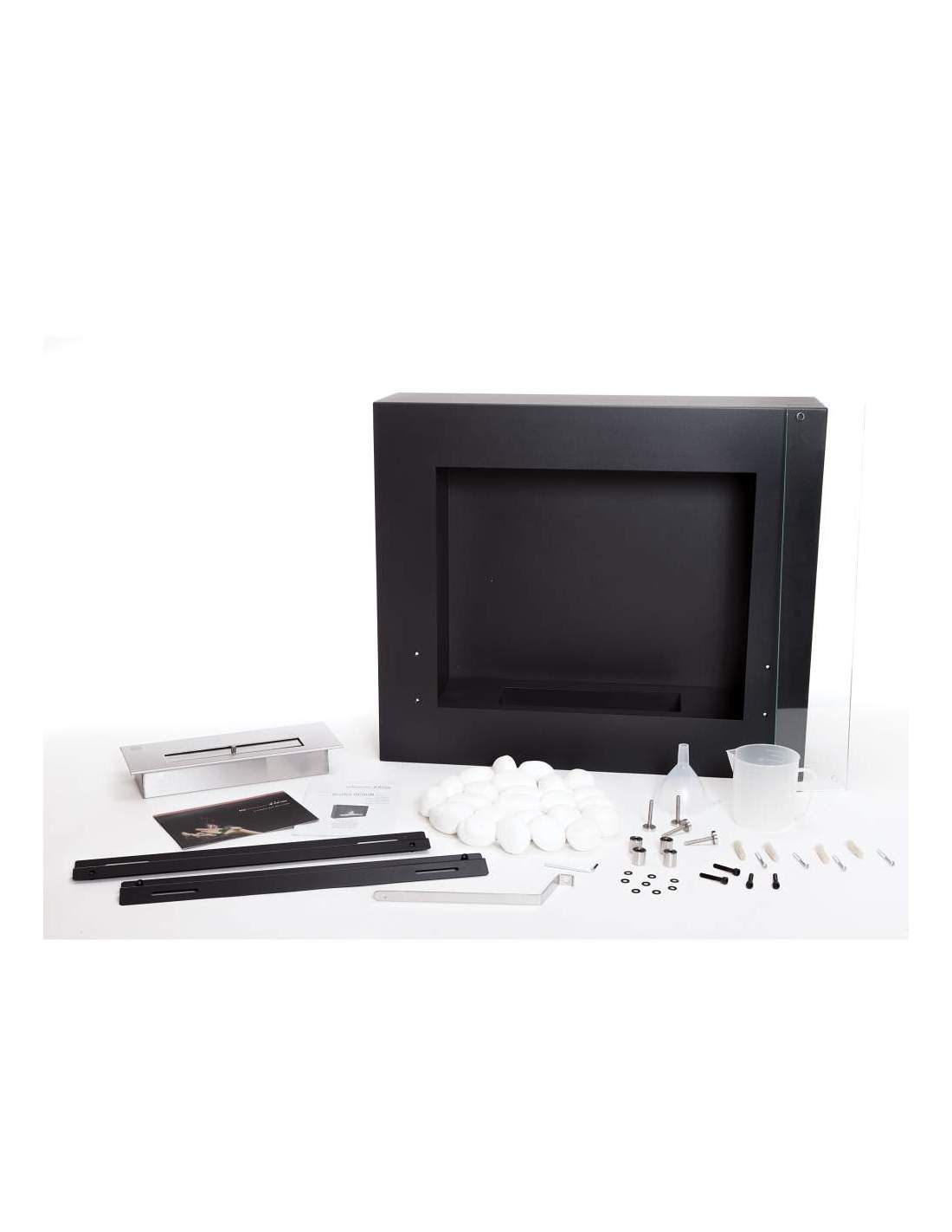 Incluye kit de colgado, y su tamaño (LxPxH: 70 x 20 x 60 cm), su ligereza (18.5kg) y su diseño moderno la hacen perfecta para poner en la pared o encastrarla, sin necesidad de obras ni salida de humos, ayudando a crear un ambiente acogedor, cálido y genuino.