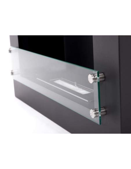 La BESTBIO DESIGN B está fabricada en acero lacado negro, con un protector de cristal de vidrio templado y está diseñada en forma de rectángulo al estilo clásico de las chimeneas de leña. Toda la serie BESTBIO DESIGN incluye una jarra y un embudo para facilitar el llenado del depósito, y un kit de piedras cerámicas decorativas que aportarán exclusividad a este minimalista modelo. Su bloque de combustión tiene una capacidad de 1.2L y ofrece la posibilidad de regular la intensidad de la llama, además su potencia calorífica es equivalente a 2KW.