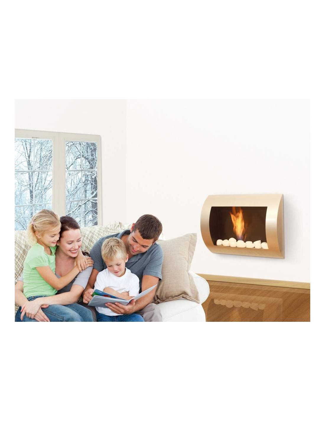 Incluye kit de colgado, y su tamaño (LxPxH: 60 x 13.4 x 45 cm), su ligereza (8kg) y su diseño moderno la hacen perfecta para poner en la pared o encastrarla, sin necesidad de obras ni salida de humos, ayudando a crear un ambiente acogedor, cálido y genuino.