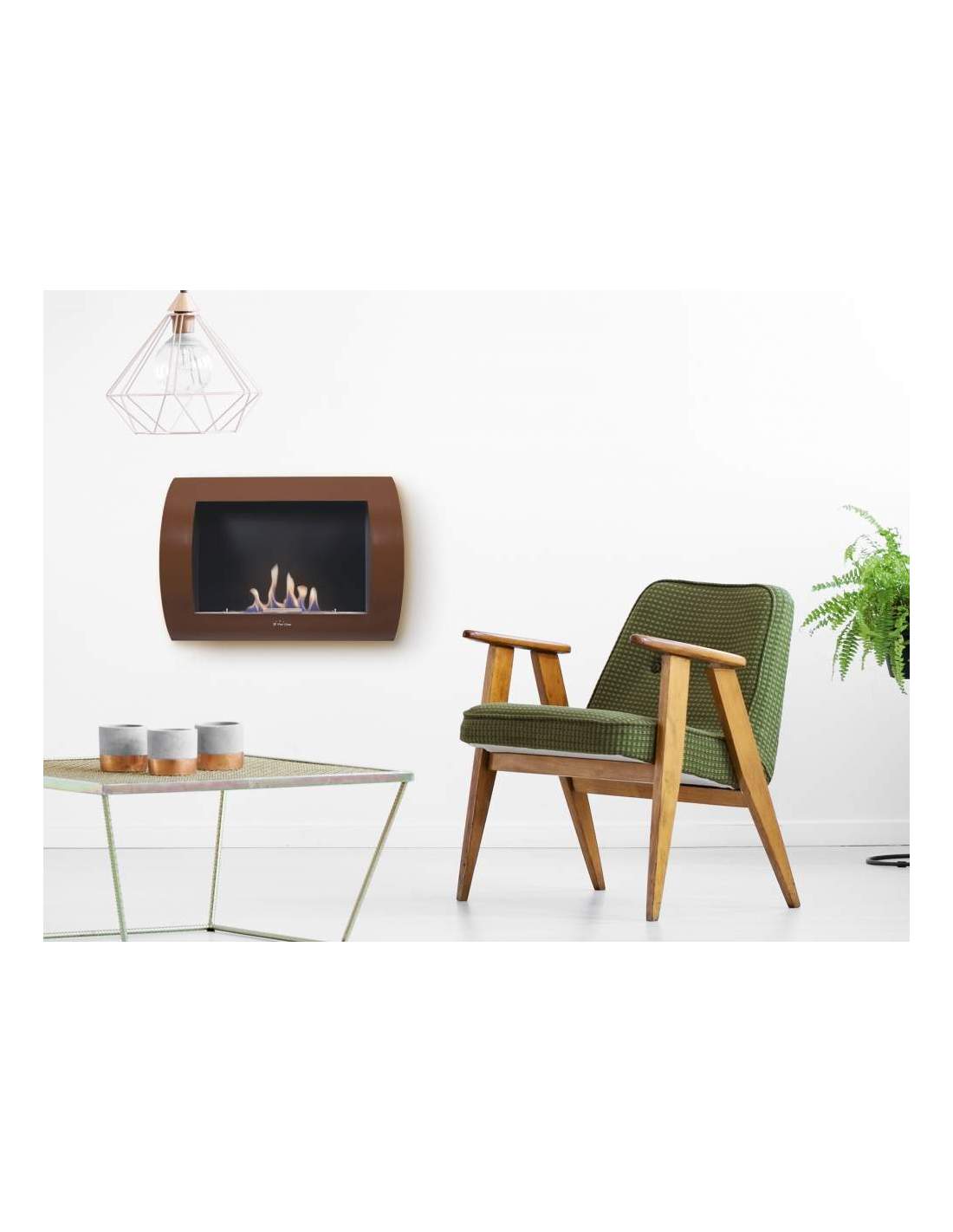 Incluye kit de colgado, y su tamaño (LxPxH: 60 x 13.4 x 45 cm), su ligereza (8kg) y su diseño moderno la hacen perfecta para poner en la pared o encastrarla, sin necesidad de obras ni salida de humos, ayudando a crear un ambiente acogedor, cálido y genuino.
