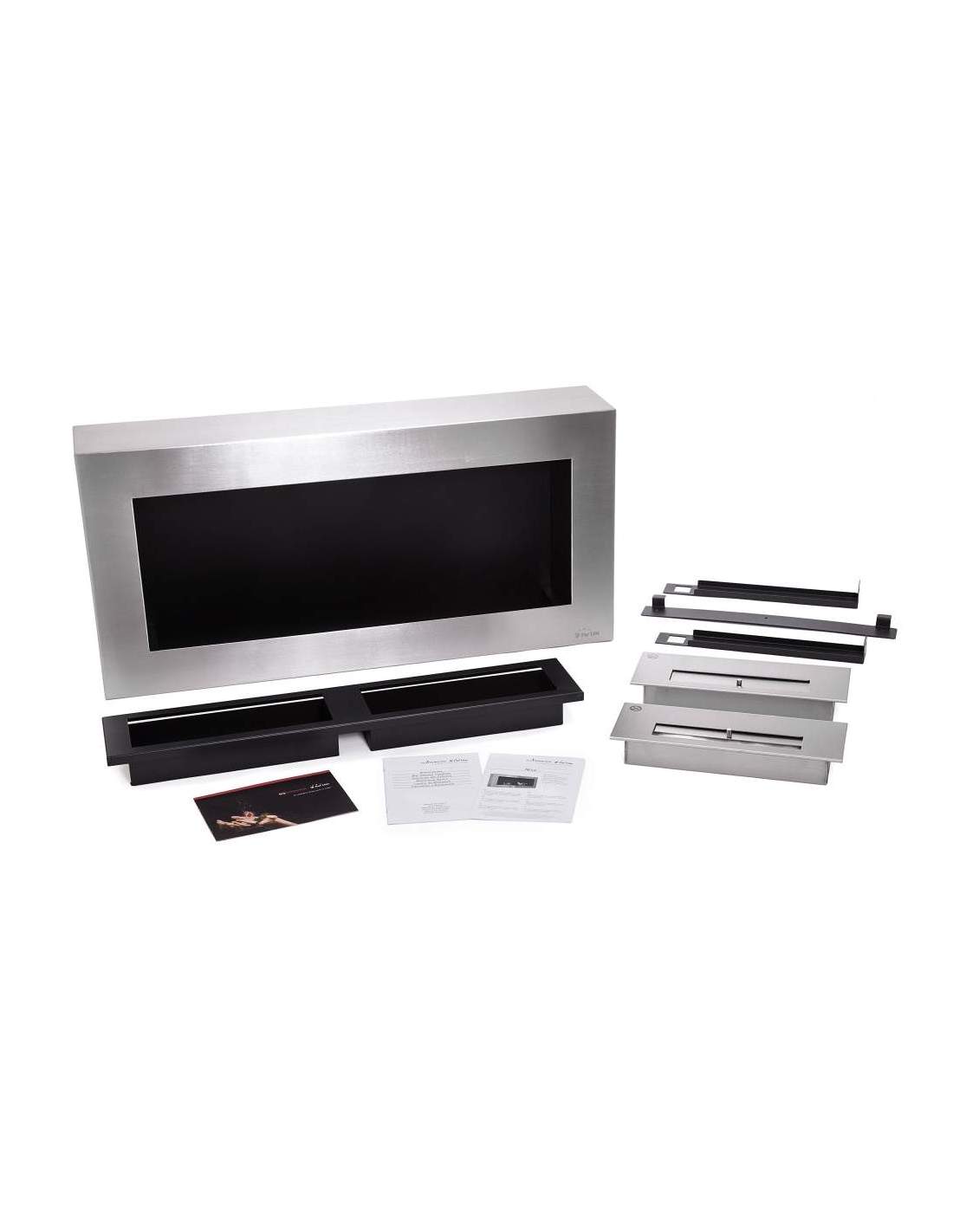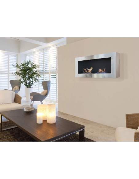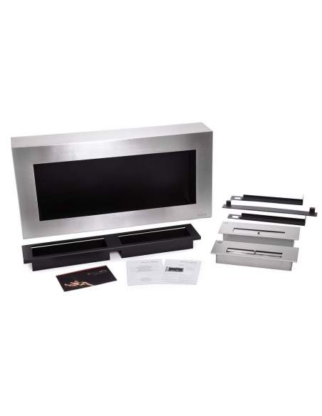 Incluye kit de colgado, y su tamaño (LxPxH: 90 x 20 x 43 cm), su ligereza (18kg) y su diseño moderno la hacen perfecta para poner en la pared o encastrarla, sin necesidad de obras ni salida de humos, ayudando a crear un ambiente acogedor, cálido y genuino.