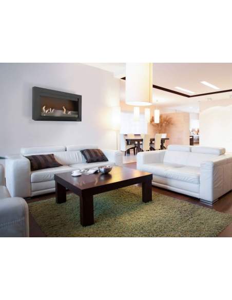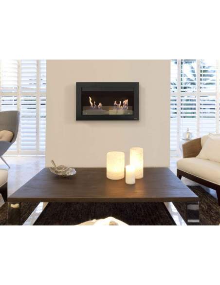 Incluye kit de colgado, y su tamaño (LxPxH: 90 x 16.5 x 54 cm), su ligereza (21kg) y su diseño moderno la hacen perfecta para poner en la pared o encastrarla, sin necesidad de obras ni salida de humos, ayudando a crear un ambiente acogedor, cálido y genuino.