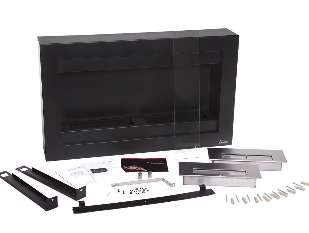 La biochimenea ETNA es un diseño de gran anchura y potencia calorífica equivalente a 4KW. Fabricada en acero esmaltado negro y con un cristal frontal de vidrio templado, su diseño clásico en forma de rectángulo es la combinación perfecta entre sofisticación y efectividad. Incluye dos quemadores de 1.2L de capacidad que ofrecen la posibilidad de regular la intensidad de las llamas.