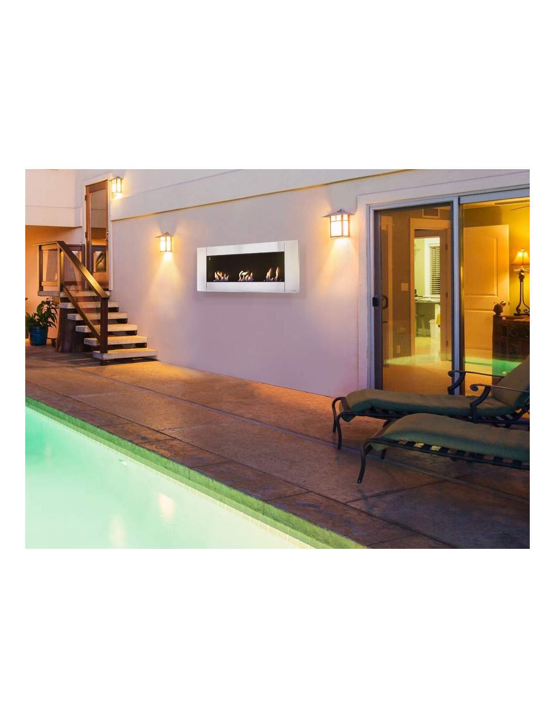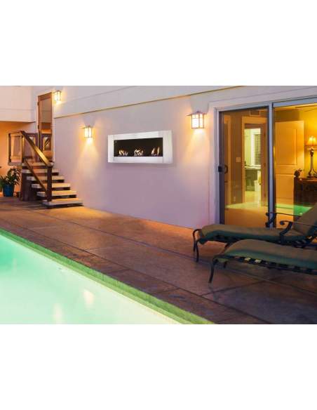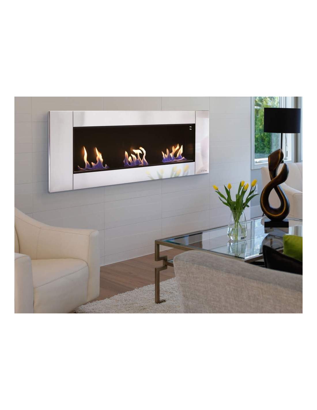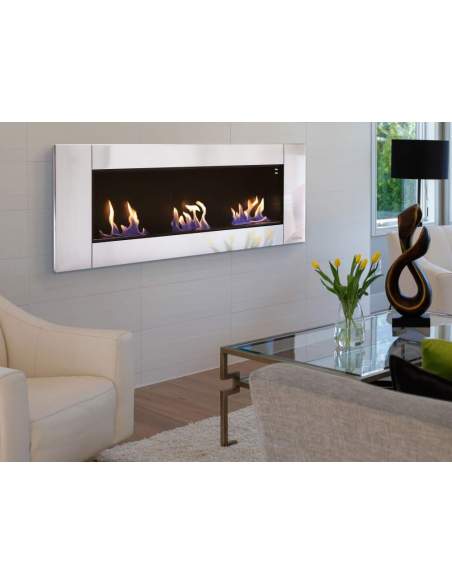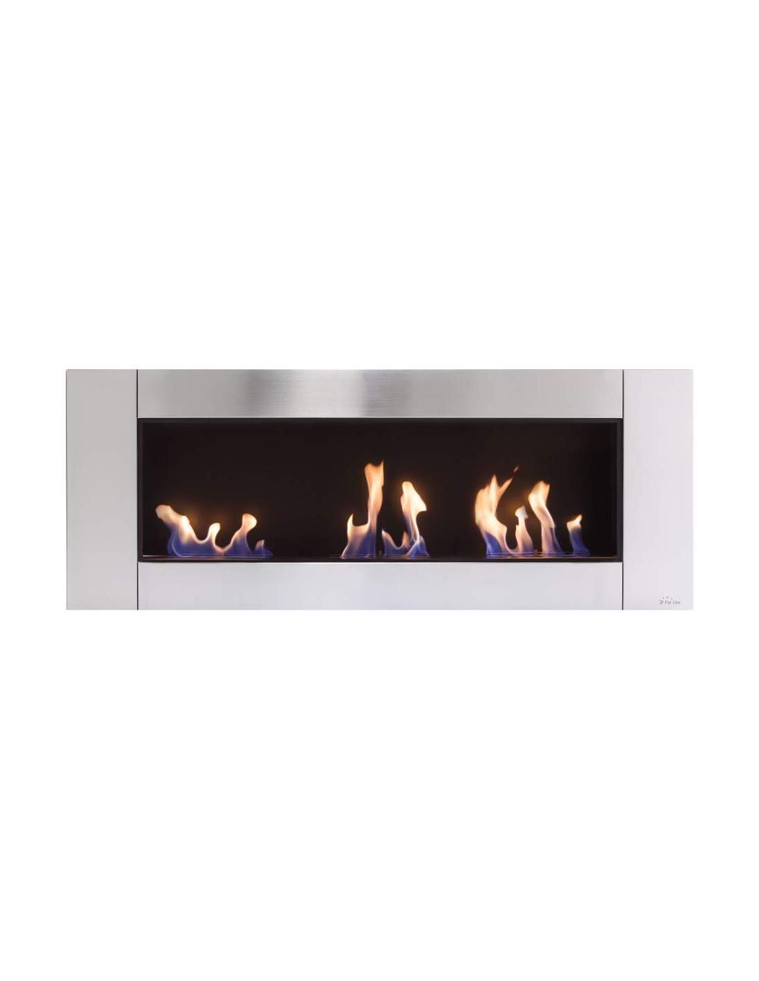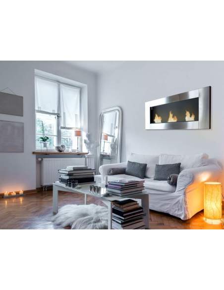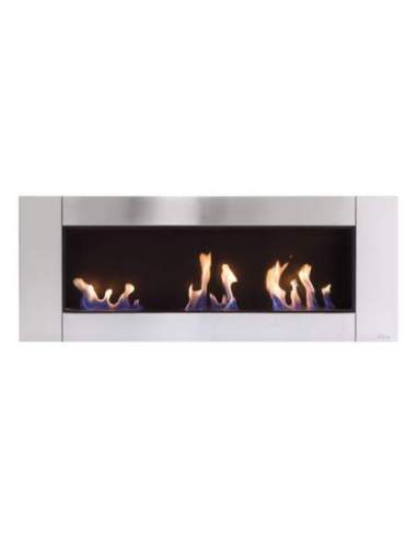 La ZEUS es una biochimenea mural panorámica fabricada en acero inoxidable y con un interior en negro que resalta la intensidad de las llamas. Su diseño es clásico pero efectivo, su potencia calorífica es equivalente a 6KW, y sus tres depósitos de 1.2L ofrecen un fuego más amplio que el resto de la gama, con posibilidad además de regular el tamaño de las llamas.