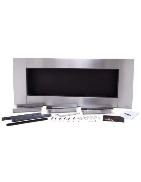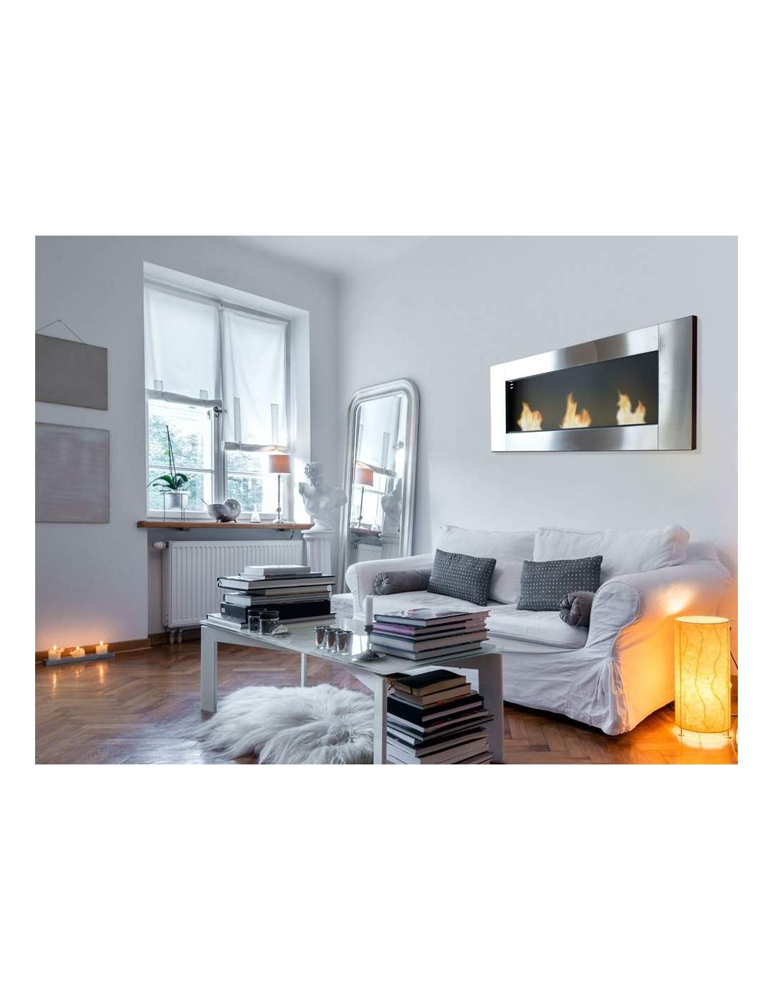 Incluye kit de colgado, y su tamaño (LxPxH: 136 x 15 x 54 cm), su ligereza (27kg) y su diseño moderno la hacen perfecta para poner en la pared o encastrarla, sin necesidad de obras ni salida de humos, ayudando a crear un ambiente acogedor, cálido y genuino.