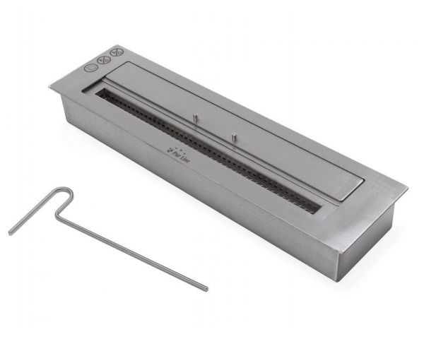 El F9660 es un bloque de combustión mediana (LxPxH: 60x16x9 cm) y ligero (8kg), fabricado con doble capa de acero inoxidable y fibra cerámica en la parte interior para garantizar un fuego seguro. Con el depósito lleno tiene una autonomía de hasta 8h, aproximadamente. Además la apertura de su tapa permite regular la intensidad de las llamas, para que puedas personalizar el ambiente según tus preferencias, y cuando desees detener el fuego podrás utilizar su herramienta de apagado.
