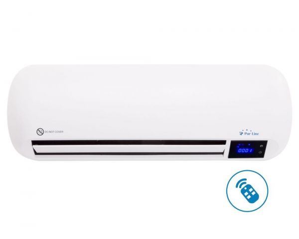 Es un aparato silencioso, muy fácil de colgar en la pared. Dispone de 3 funciones diferentes: ventilación, aire templado, o aire caliente, que se pueden seleccionar desde el panel de control del calefactor o cómodamente con el mando a distancia.