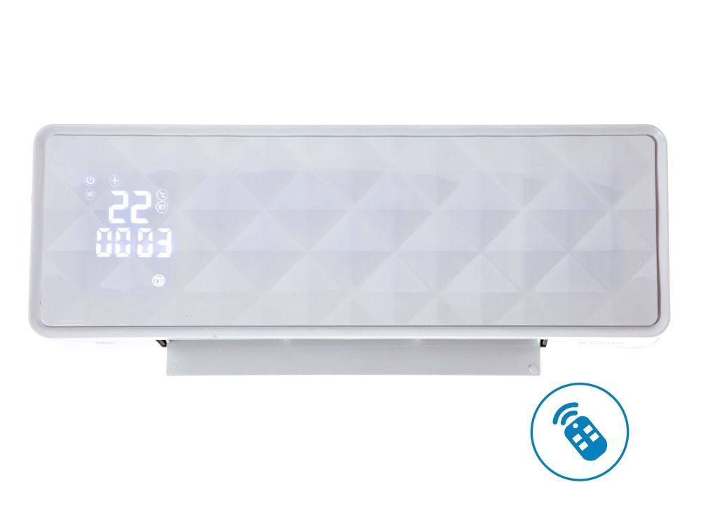 Calefactor cerámico de pared con 2000 W con pantalla digital, mando a distancia y temporizador programable 24 horas.