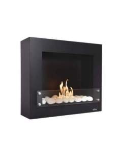 Chimenea de etanol mural gris con cristal y piedras cerámicas