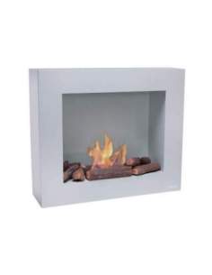 Chimenea de etanol mural en acero blanco y cristal templado
