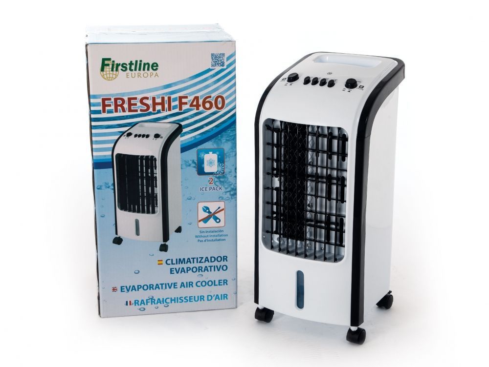 El FRESHI F460 cuenta con 3 velocidades, temporizador y oscilaci贸n autom谩tica para mejorar la distribuci贸n del aire y ofrecer una experiencia completamente personalizada, adem谩s tiene una doble funci贸n de humidificaci贸n y purificaci贸n del aire gracias a su ventilador, todo ello por un consumo m谩ximo de 60W, diez veces inferior al de cualquier aire acondicionado port谩til.