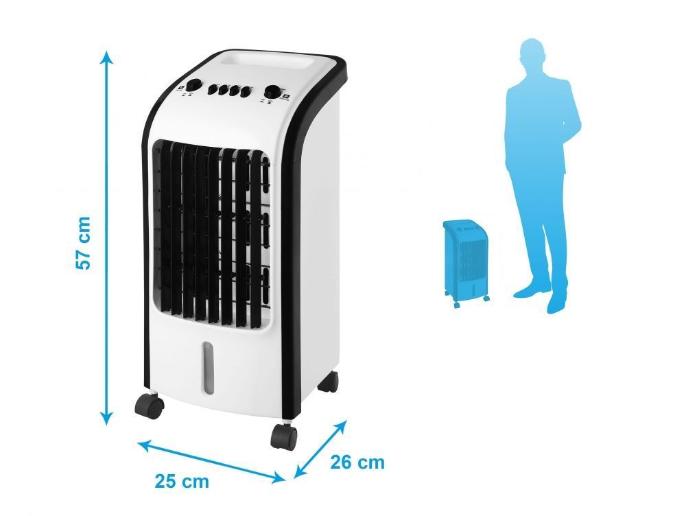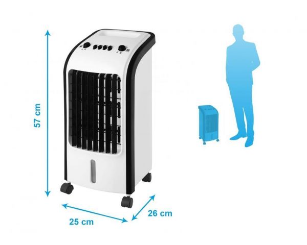 Con un dise帽o compacto acabado en blanco, su tama帽o (LxPxH: 24 x 57 x 26 cm) y su peso (5kg) lo hacen ideal para habitaciones de hasta 15m2, y gracias a sus ruedas lo podr谩s mover seg煤n tus propias necesidades.