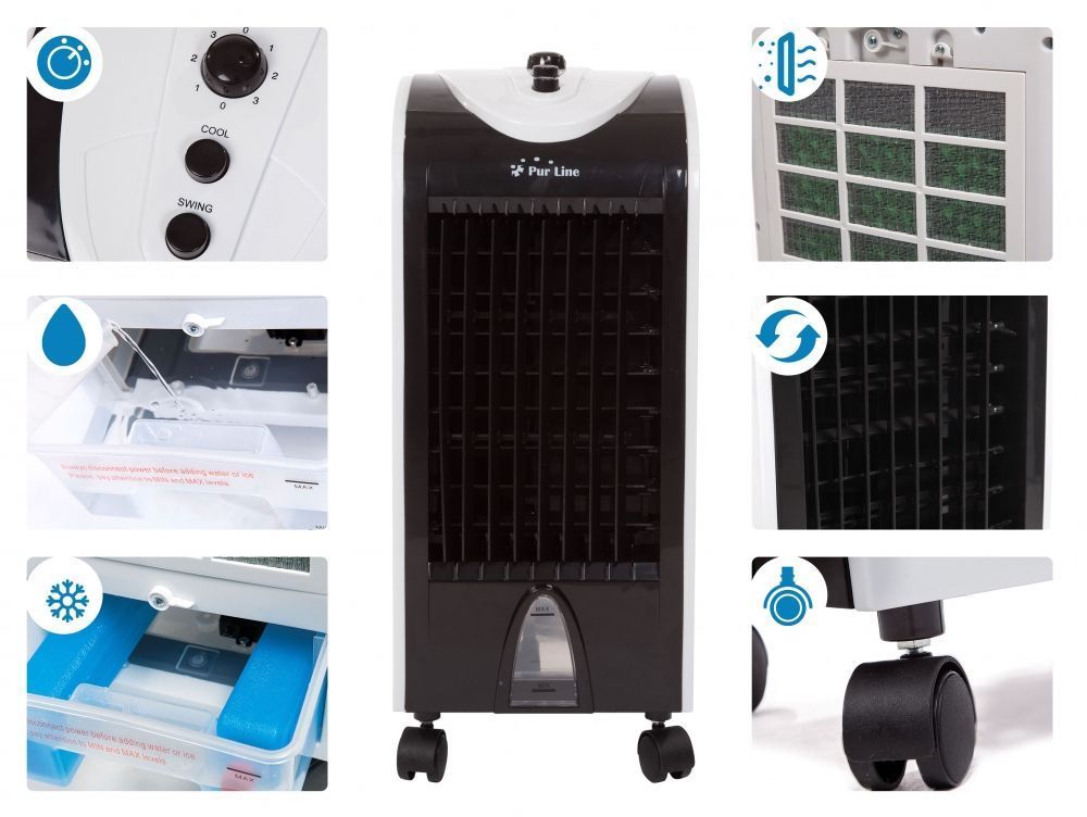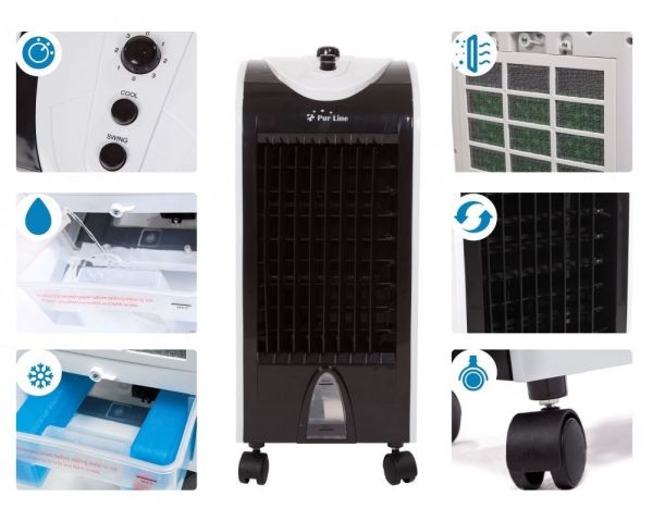 ¿Alguna vez has pensado en un sistema de climatización para tu hogar accesible, sencillo y cómodo? Este evaporativo de Purline es la solución para sobrevivir al calor, pues funciona gracias a una tecnología de enfriamiento avanzada y silenciosa (56dB) que toma agua de su depósito (4L) y gracias a sus dos ice-packs la enfría y la expulsa, refrescando el ambiente rápidamente sin compresores ni refrigerantes químicos, totalmente ecológico y bueno para tu salud.