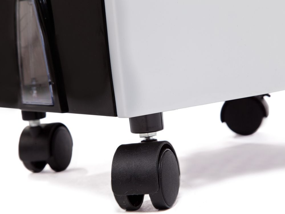 Con un diseño compacto acabado en blanco y detalles en negro, su tamaño (LxPxH: 25 x 29 x 58 cm) y su peso (5.3kg) lo hacen ideal para habitaciones de hasta 15m2, y gracias a sus ruedas lo podrás mover según tus propias necesidades.