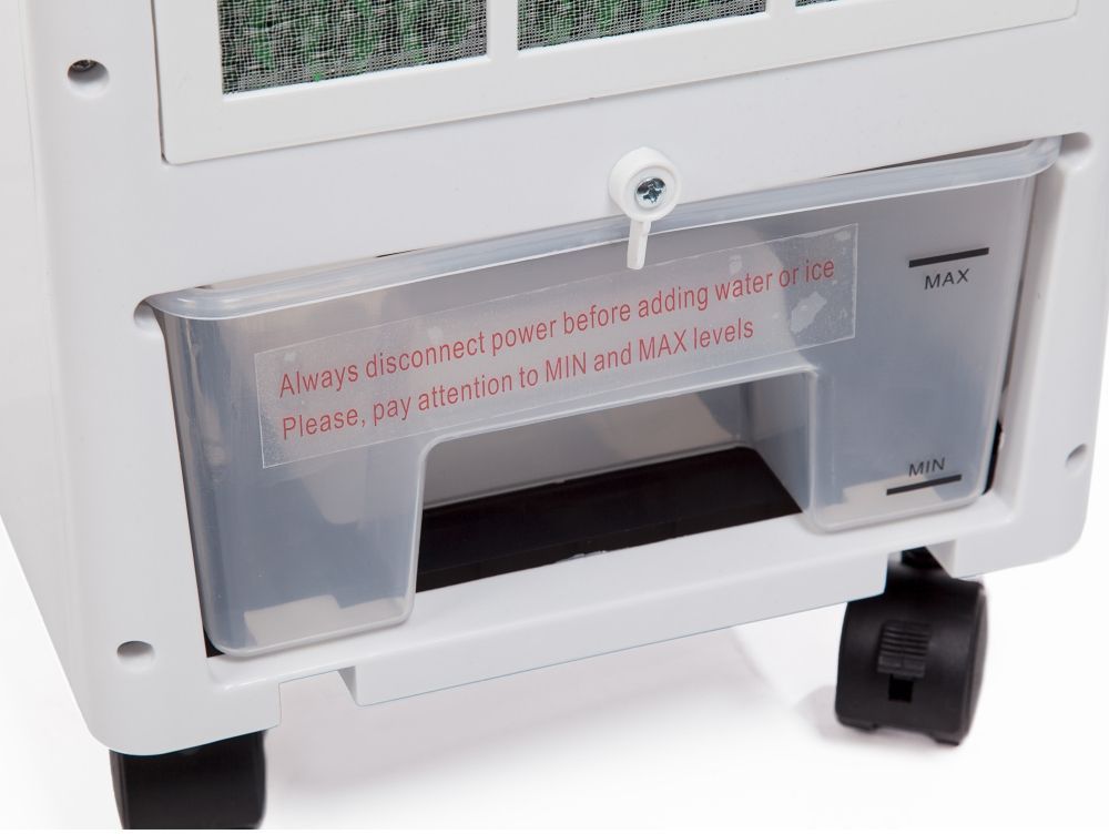 El RAFY 51 cuenta con 3 velocidades, temporizador y oscilación automática para mejorar la distribución del aire y ofrecer una experiencia completamente personalizada, además tiene una doble función de humidificación y purificación del aire gracias a su ventilador y filtro de carbono activo, todo ello por un consumo máximo de 75W, diez veces inferior al de cualquier aire acondicionado portátil. Entre sus extras encontrarás la función COOL, que permite utilizar agua fría y hielos para intensificar su efectividad.