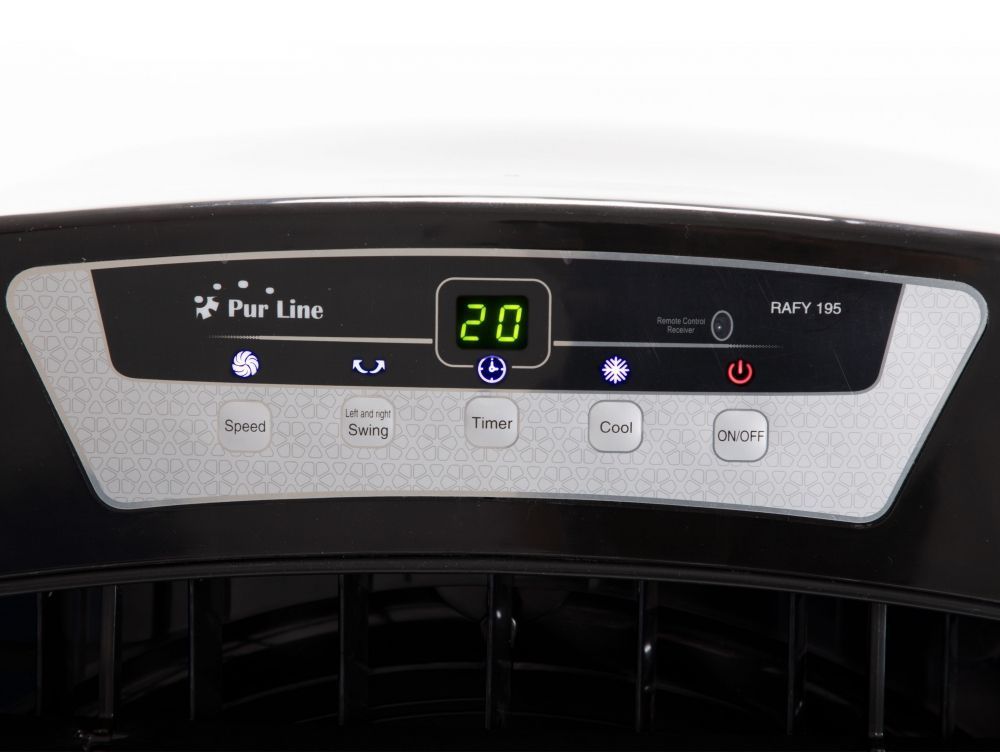 El RAFY 195 cuenta con un panel LED de control digital con 3 velocidades y, temporizador y oscilaci贸n autom谩tica para mejorar la distribuci贸n del aire y ofrecer una experiencia completamente personalizada, adem谩s tiene una doble funci贸n de humidificaci贸n y purificaci贸n del aire, todo ello por un consumo m谩ximo de 450W, diez veces inferior al de cualquier aire acondicionado port谩til. Entre sus extras encontrar谩s la posibilidad de control de remoto a trav茅s de mando a distancia y rejilla motorizada.