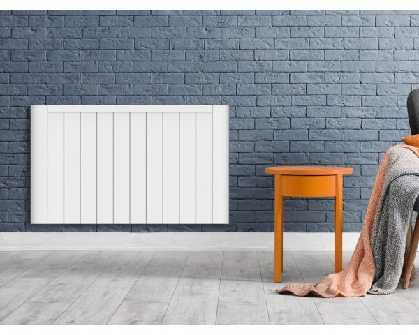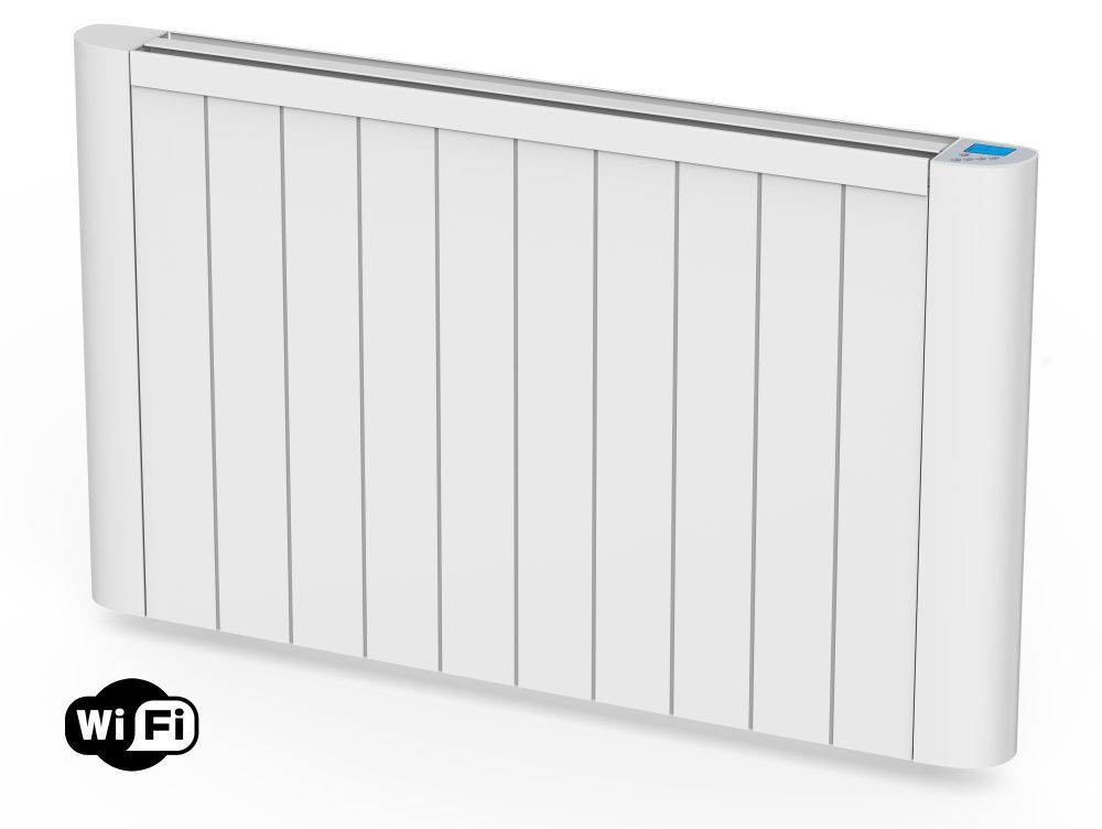 Radiador de inercia digital con placa cerámica interna que ayuda a reducir el consumo al aprovechar el calor acumulado, potencia máxima 1800 W.