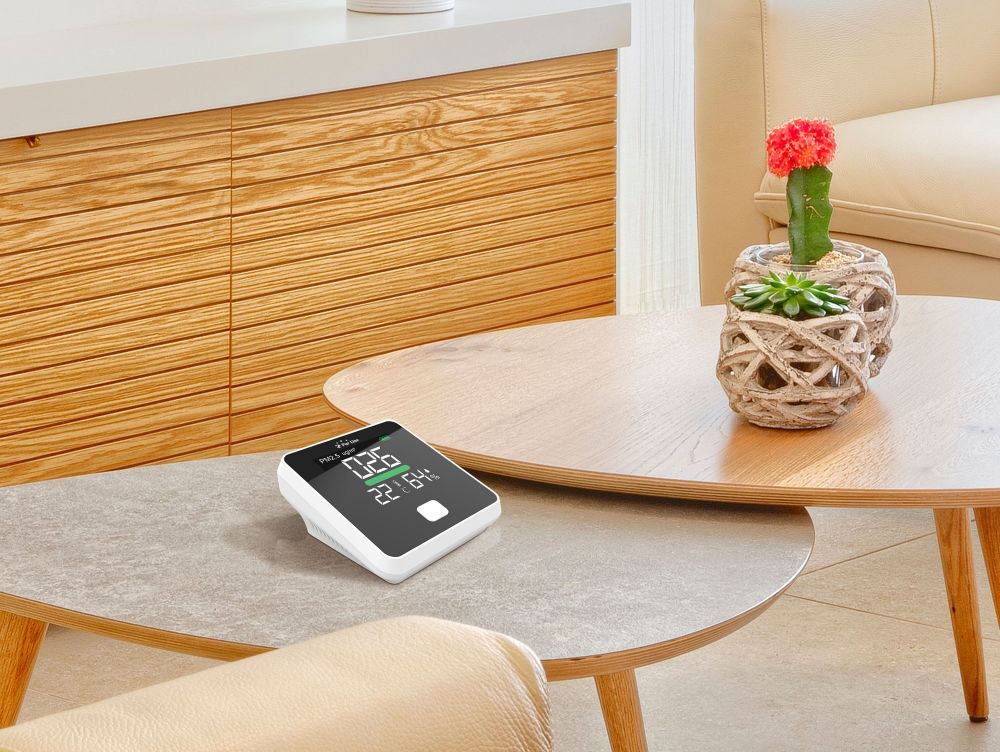 Apto para usar tanto en interior como en exterior, este completo producto tiene una pantalla LCD digital con indicador de 4 colores y 3 funciones ofrece información sobre la humedad y temperatura ambiente, y el índice de partículas finas PM2.5.