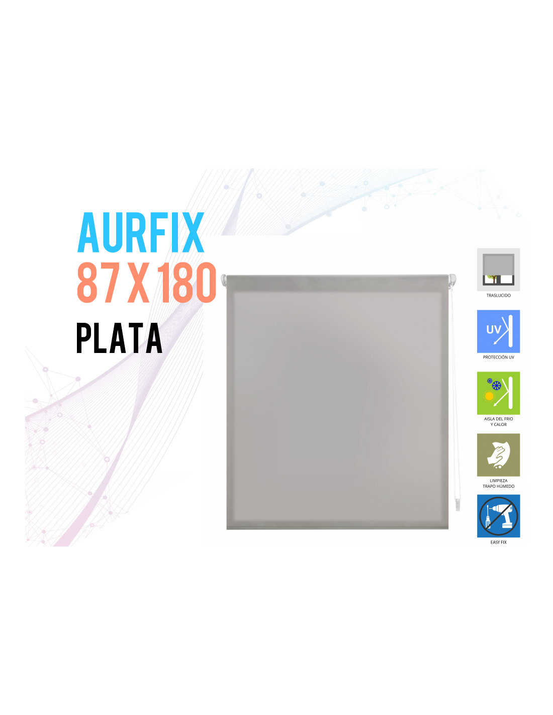 El AURFIX es un modelo translucido con tejido liso que aportará personalidad y distinción a tu hogar. Gracias a su sistema de instalación easy fix sólo tendrás colocar el estor mediante adhesivos o pinzas en el marco de tu ventana, sin necesidad de usar taladros. Además su mecanismo de cadena te permitirá subir y bajar el estor fácilmente para graduar el acceso de luz.
