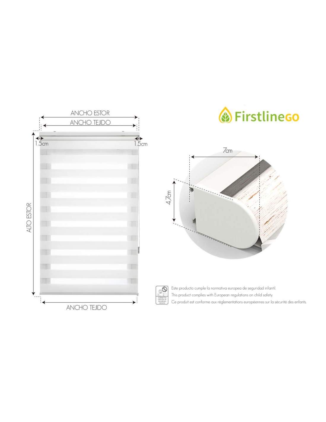 Estor Noche y Dia traslúcido tricolor de 140x180 cm