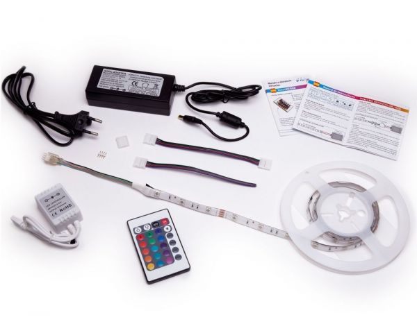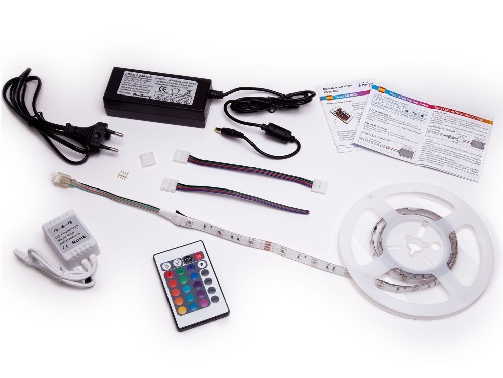 Nota: El kit incluye todo lo necesario para ponerla en funcionamiento en tan s贸lo unos minutos ya que est谩 compuesto por tira de LED麓s , el receptor de se帽al IR, el mando a distancia y la fuente de alimentaci贸n.