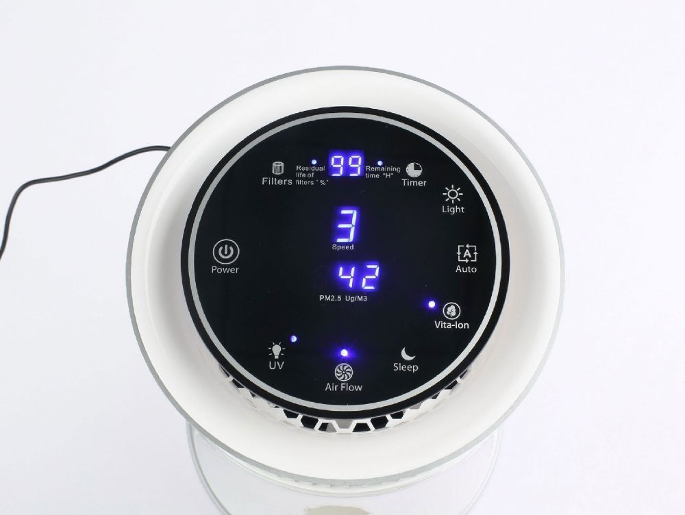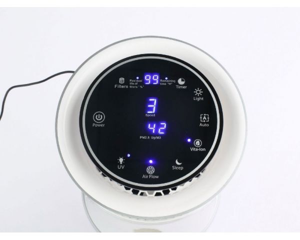 El FRESH AIR 50 cuenta con pantalla LED táctil con 4 colores, indicador numérico de la pureza del aire y de la vida útil del filtro, 5 velocidades, modo AUTO y temporizador (24h). Además incluye un prefiltro y filtro HEPA, filtro de carbón activo para facilitar la eliminación de los malos olores, lámpara UV e ionizador que, gracias a la emisión de partículas cargadas eléctricamente, favorece la eliminación de las impurezas del aire.