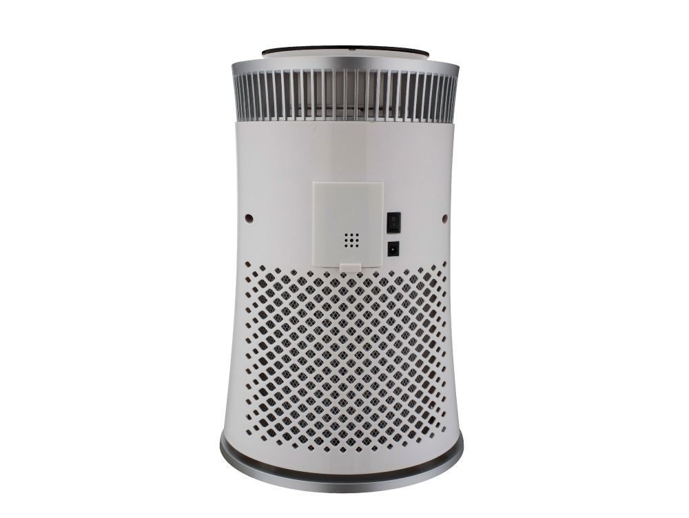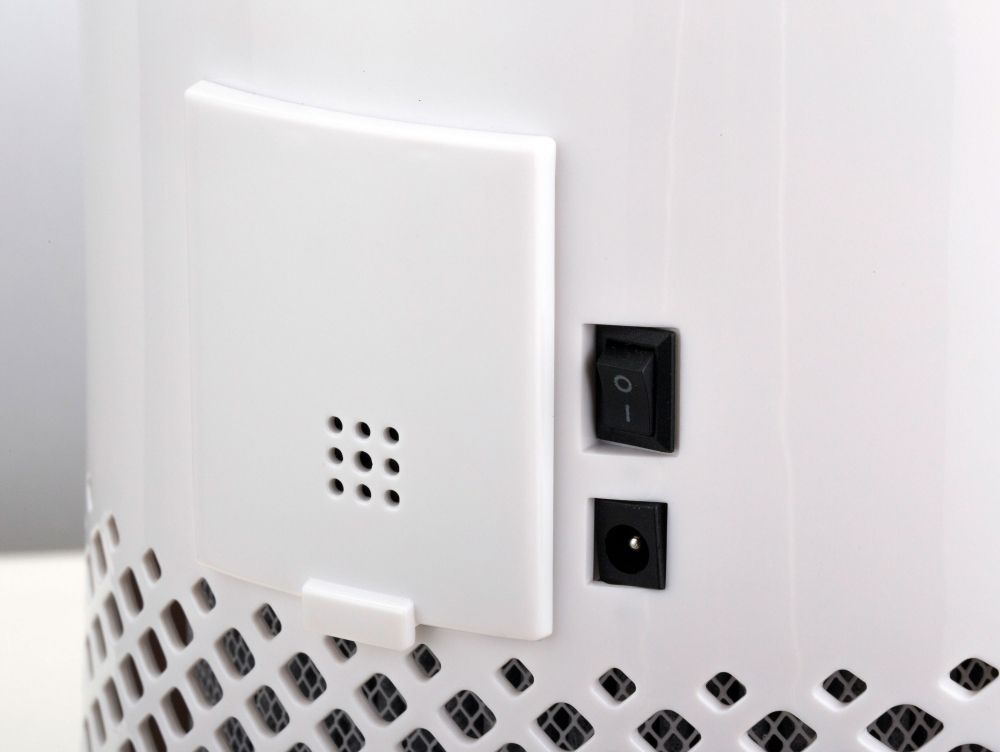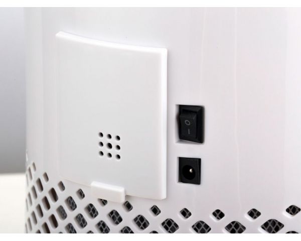 Su diseño cilíndrico en color blanco combina eficacia y elegancia, y su tamaño (2kg) y ligereza (LxPxH: 22 x 22 x 34cm) lo hacen ideal para estancias de hasta 20m2.