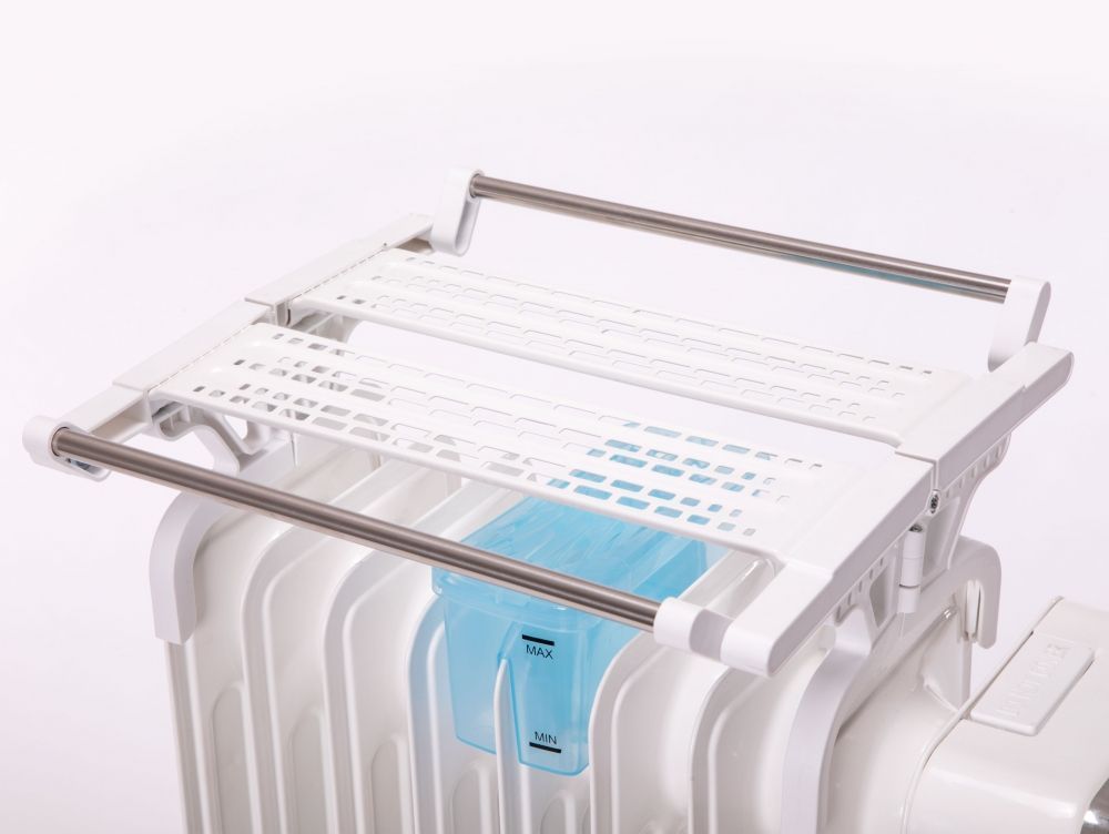 Incluye mini tendedero plegable para tener los calcetines siempre calientes y recipiente para humidificar el ambiente.