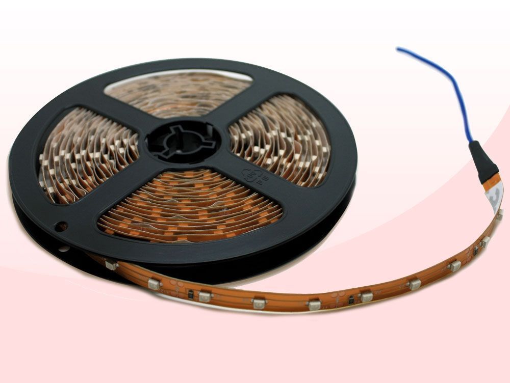 Tira de LED con chip 3528 de alta luminosidad y bajo consumo que proporciona una luz uniforme de color azul.